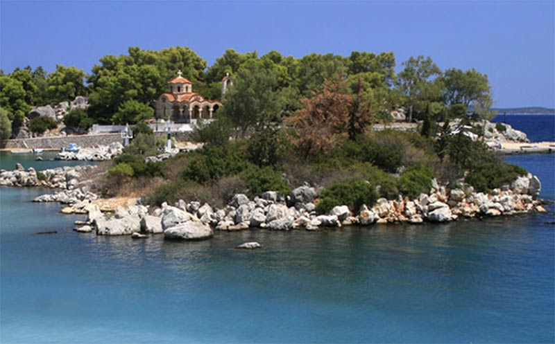 Το νησάκι των Αγίων Αναργύρων είναι μία μικρή χερσόνησος στην είσοδο της πόλης, απέναντι από τη Βρωμολίμνη και δίπλα στη Μαρίνα των Μεθάνων και στην παραλία των Αγίων Αναργύρων.