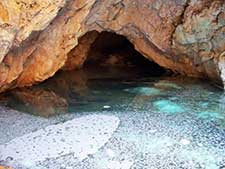 Ανακαλύφθηκε το 1973 κατά τη διάνοιξη του δυτικού παραλιακού δρόμου, είναι ηλικίας 2,5 εκατ. ετών, έχει μήκος 250 μέτρων και αποτελείται από τρεις θαλάμους.